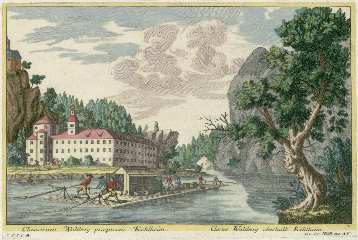 [Theatrum Danubii exhibens Varios Prospectus amoenissimos Arcium, Templorum, Coenobiorum etc. quae Danubio adjacent ac Augusta iter faciendes Viennam oculis usurpantur a C. S. Schauplatz des Donau-Storms das ist Unterschidliche angenehme Prospecte von Schlössern, Kirchen, Clöstern welche sich auf der Reisse von Augspurg nach Wienn an der Donau liegend praesentiren]. C. P. S. C. M. Haer. Ier. Wolfij exc. A. V. 10, Claustrum Waltberg praejacens Kehlheim = Closter Waltberg oberhalb Kehlheim / |