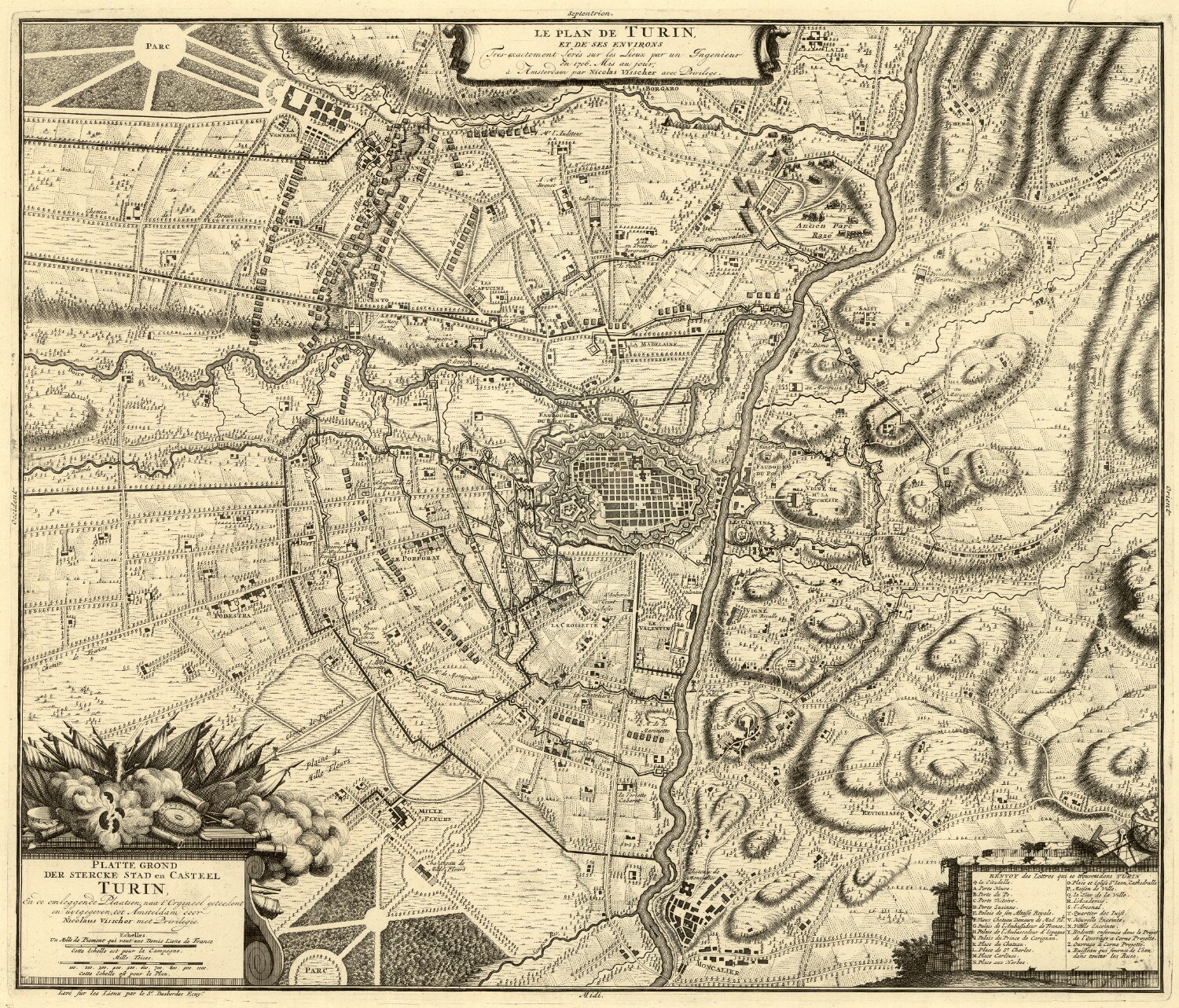 Le Plan de Turin et de ses environs Trés-exactement Levés sur les Lieux par un Ingenieur en 1706. / Mis au Jour, à Amsterdam par Nicolas Visscher ; Levé sur les Lieux par le Sr. Desbordes Ecuy |
